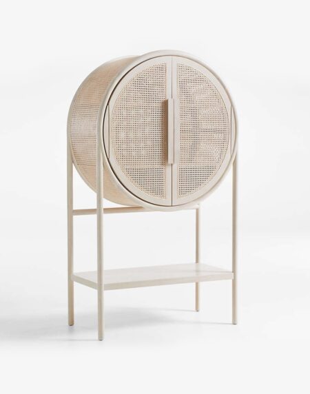 - Frame is benchmade with precision-cut solid ash with grey wash finish, hardwood plywood, and a cane seat